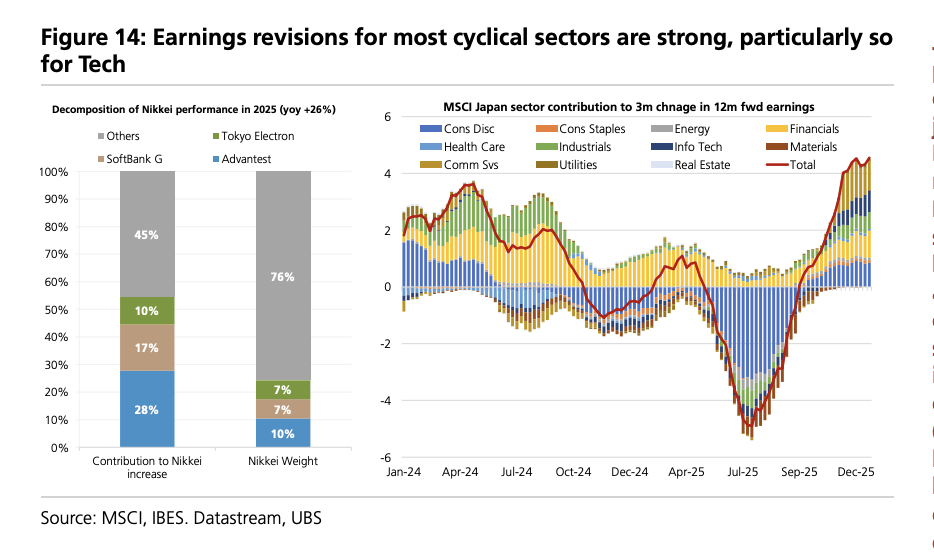 在股市方面,日本市场呈现出明显的结构性分化。2025年以来日经225指数的上涨中,仅三只个股就贡献了约55%的涨幅,显示市场高度集中。同时,本轮行情完全由外国投资者与企业回购驱动,日本国内个人及机构投资者仍为净卖出方。这种“外热内冷”的资金格局,也从侧面反映出本土投资者对通胀持续走高的预期仍持谨慎态度。