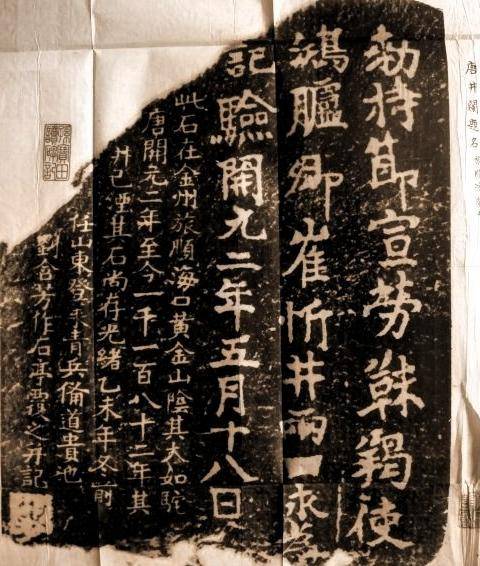 内藤湖南到达旅顺后,乔装打扮,避开当地百姓的视线,围着唐碑仔细观察、测量尺寸、记录文字,还专门拓印了碑身上的29个大字。