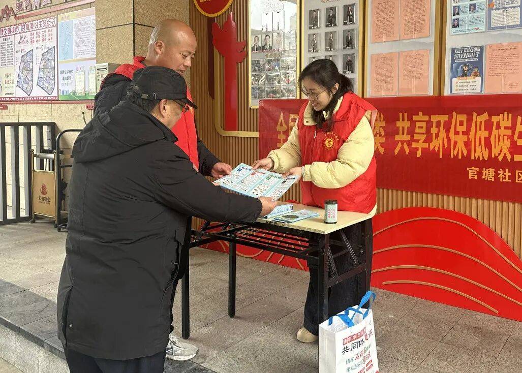 1月28日,官塘社区开展“全民参与垃圾分类 共享环保低碳生活”主题宣传活动,引导大家从源头做好分类,养成绿色低碳的生活习惯,在互动中提升居民的分类知晓率。(官塘社区 汪梦娇)