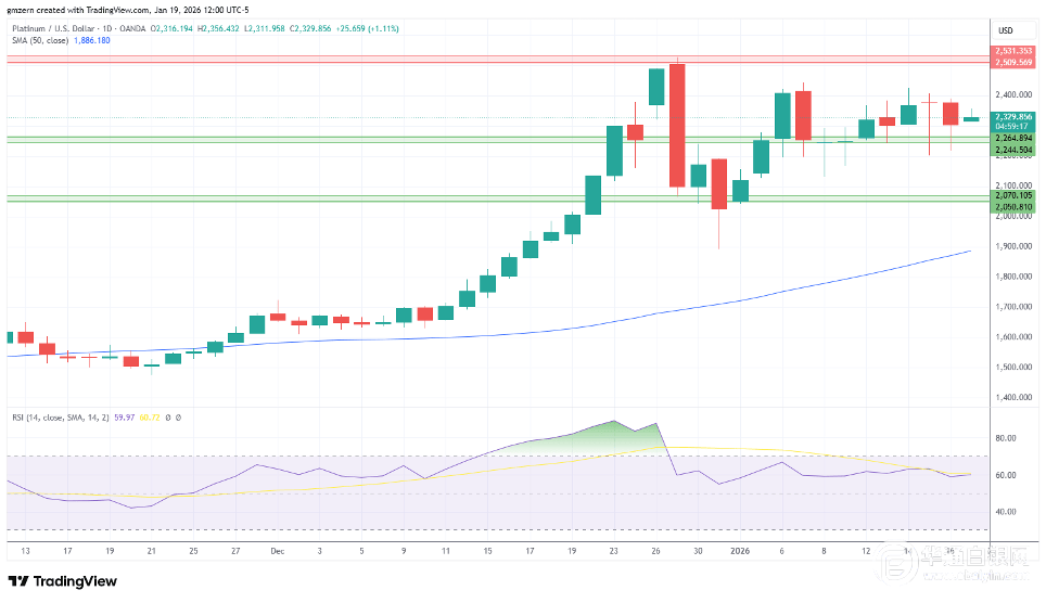 若铂金价格突破2450美元水平,则将有望向2510美元至2530美元阻力位攀升。