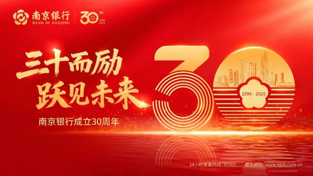 伴着“十五五”开局的奋进号角,踏着金融服务中国式现代化和强国建设的铿锵步伐,南京银行迎来成立30周年的历史时刻!