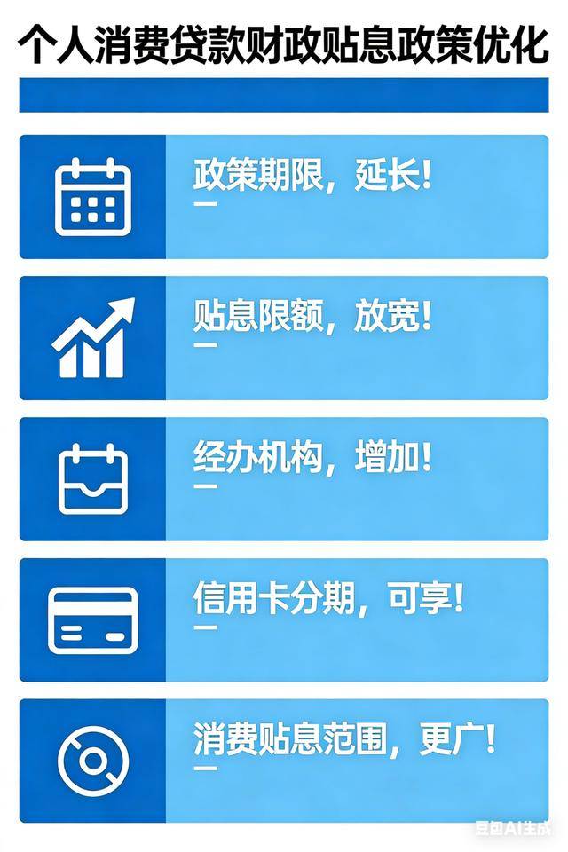 春节还没到,政策“红包”先来到。20日,财政部、中国人民银行、金融监管总局发布有关通知,优化实施个人消费贷款财政贴息政策。相比去年8月推出的个人消费贷款贴息政策,新政策在多方面优化升级,包括将政策实施期限延长至今年底、将信用卡分期业务纳入贴息范围、拓展可享贴息的消费领域、提高贴息标准等。