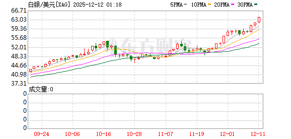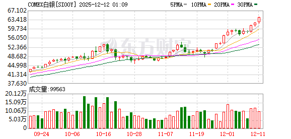 白银期、现货再创历史新高,截至发稿,COMEX白银期货涨超5%,报64.12美元/盎司;现货白银涨超3%,报63.7美元/盎司。现货黄金涨幅扩大至1%,报4272.55美元/盎司。