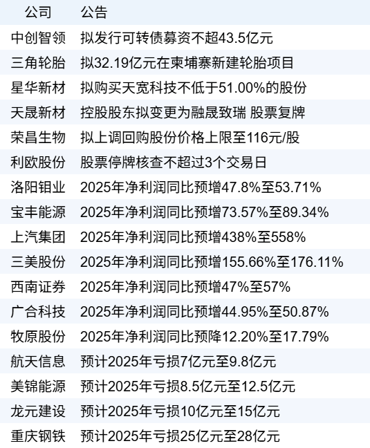 •财政部发布《延续实施境外机构投资境内债券市场企业所得税、增值税政策的公告》。自2026年1月1日起至2027年12月31日止,对境外机构投资境内债券市场取得的债券利息收入暂免征收企业所得税和增值税。(新华财经)