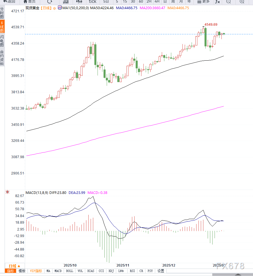 从关键价位观察,若金价能够重新站稳并有效突破4,500美元整数关口,将有助于多头重拾主导权,并打开进一步上行空间;反之,若跌破并确认失守200日均线,则需警惕回调幅度扩大,进入更深层次的技术修正。