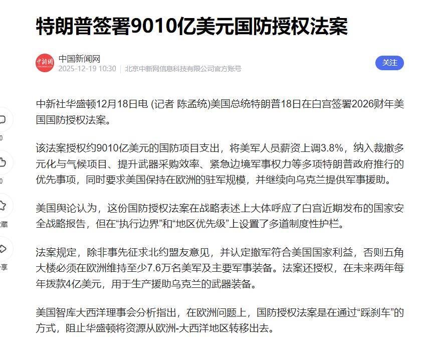 在这种情况下,多线作战的梦想几乎变成了天方夜谭。五角大楼早已进行了多次推演,结论十分清晰:西太平洋的军事平衡,已经发生了根本性的变化。白宫内部的官员更加直言不讳地表示,美国的资源首先要保障本土安全,否则财政可能会彻底崩溃。所以,你会发现2025年年底通过的国防授权法案,虽然数额高达9010亿美元,但其中并未提到直接介入台海这一话题。相反,法案加大了对台湾军售的预算,支持了联合军演。这背后的真正意思也很清楚:美国并不敢贸然介入,因为如果真卷入战争,美军需要投入大量海空力量,而伤亡人数可能成千上万。更不要说全球供应链可能因此而彻底崩溃,企业代表们在国会听证会上频频发出警告。这些软招数实质上是美国不敢轻举妄动的表现。
