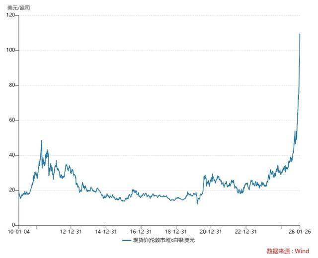2010年至2026年1月26日现货白银价格走势 截图自Wind