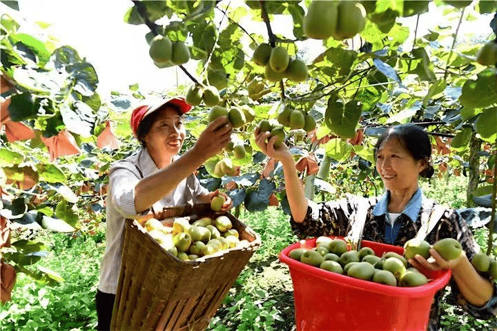 村民采摘猕猴桃。