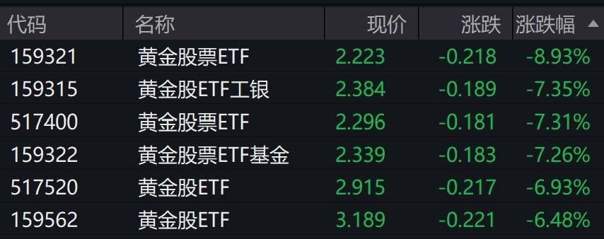 受盘面影响,多只黄金股相关ETF跌超7%。