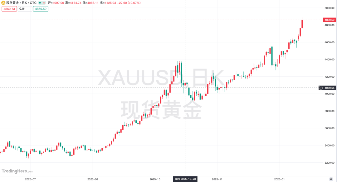 现在回过头来看,黄金的价格已经从4000美元涨到了4863美元。