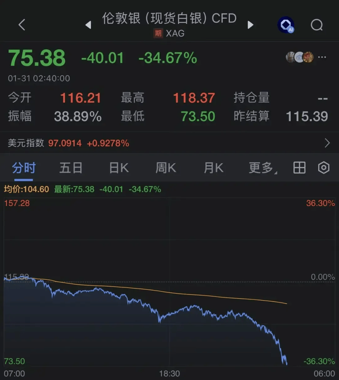 北京时间1月31日凌晨,恐慌性抛售席卷全球贵金属市场。