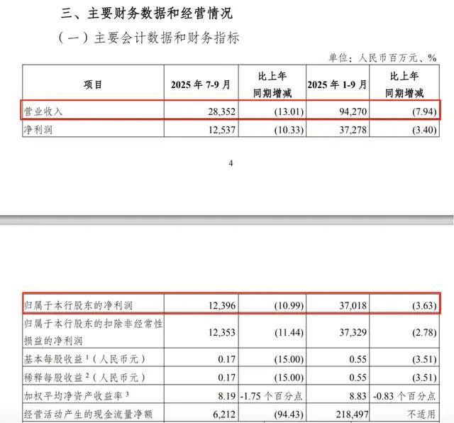 然而,无论战略叙事如何铺展,最终仍需财务数据落地验证。光大银行前三季度营收同比下降7.94%、归母净利润同比下降3.63%的核心业绩,与战略推进的积极表述形成鲜明反差。