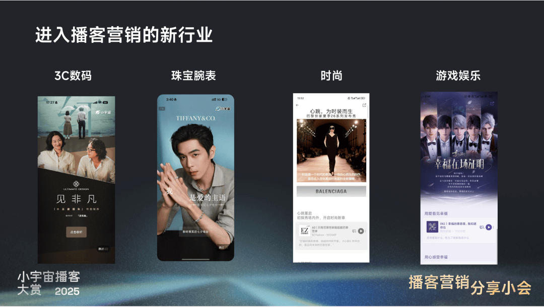 与小宇宙合作的品牌,从3C数码、珠宝腕表,到游戏娱乐,都展现出巨大的内容共创力。它在其他平台或许是一个画面、一小段视频所呈现的内容,而在播客内容里,则得到了前所未有的深度拓展。而作为创作者,也成为了真正的融入品牌叙述的人,链接起品牌和受众的深度共鸣。