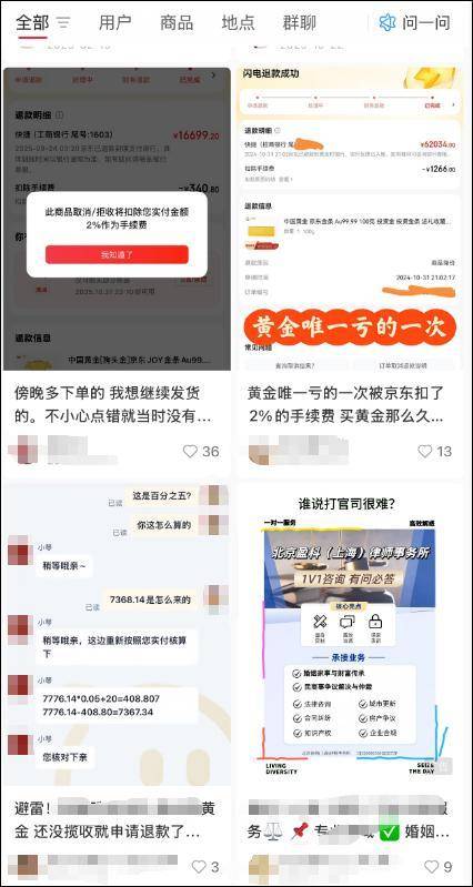 记者浏览发现,社交平台上就有不少网友提及被扣款的经历,其中有人因退货金条产品被平台扣款超千元。有受访消费者表示理解黄金的投资属性,也愿意支付手续费,但还是觉得5%的比例偏高,且其申请退款时平台并未明显提醒称要扣手续费(退货规则一般在商品详情页中)。