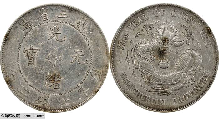 吉林乙巳七钱二分,PCGS-XF,压印清晰,字口磨痕,750美元落槌;民国十年广西贰毫铜质,NGC-MS62,巧克力色包浆,字口明晰,1100美元落槌;广东光绪七钱二分,PCGS-XF,包浆斑驳,240美元落槌;广东宣统七钱二分,PCGS-XF,灰黑包浆,240美元落槌;东三省光绪七钱二分,PCGS-XF,底光犹存,点状黑包浆,高点轻磨,6500美元落槌,含佣约合人民币5.46万元成交。