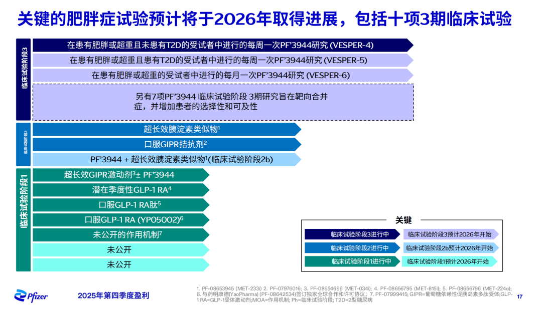 更吓人的是,面对这样的初步数据,辉瑞计划2026年推进20多个肥胖研究,其中包括10项涵盖慢性体重管理、肥胖相关疾病PF-3944三期研究。