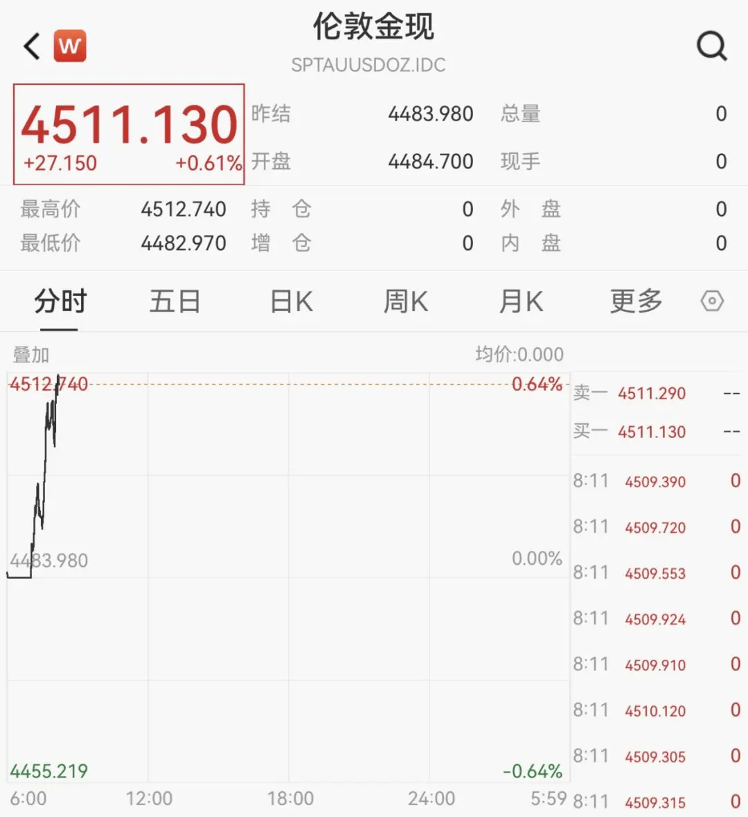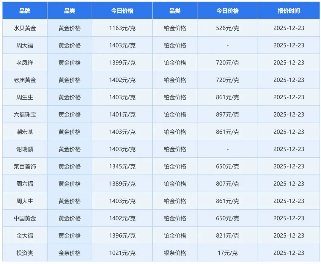 多家黄金品牌隔夜齐涨