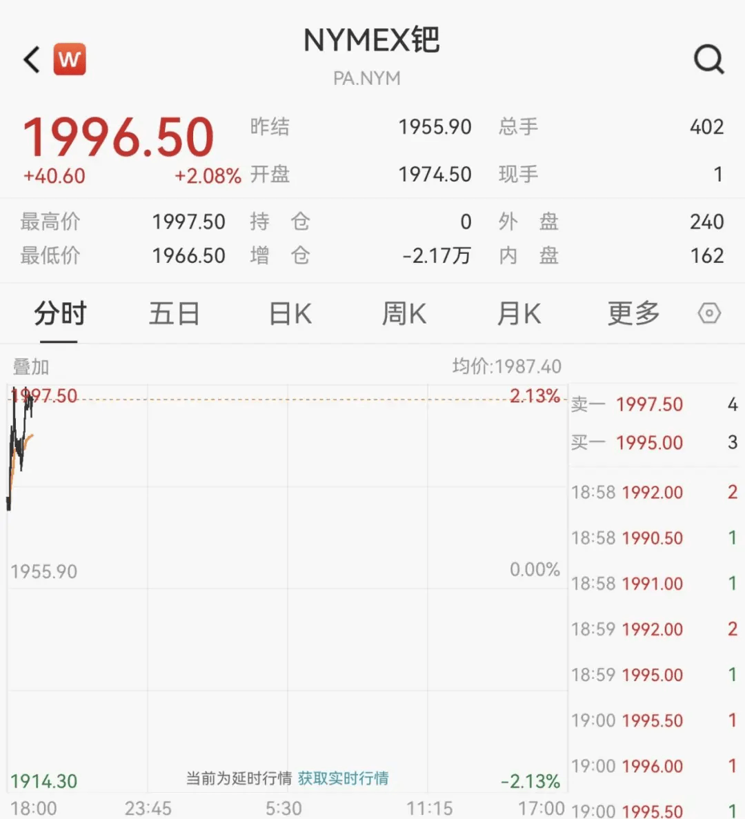 此外,现货钯金突破1900美元/盎司,为2022年年底以来新高。