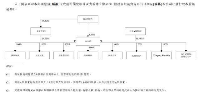 另外,新泉股份由唐美华(唐志华的姐姐)直接持有1.84%的股权。新泉投资由唐志华持股74.5%及唐美华持股25.5%。