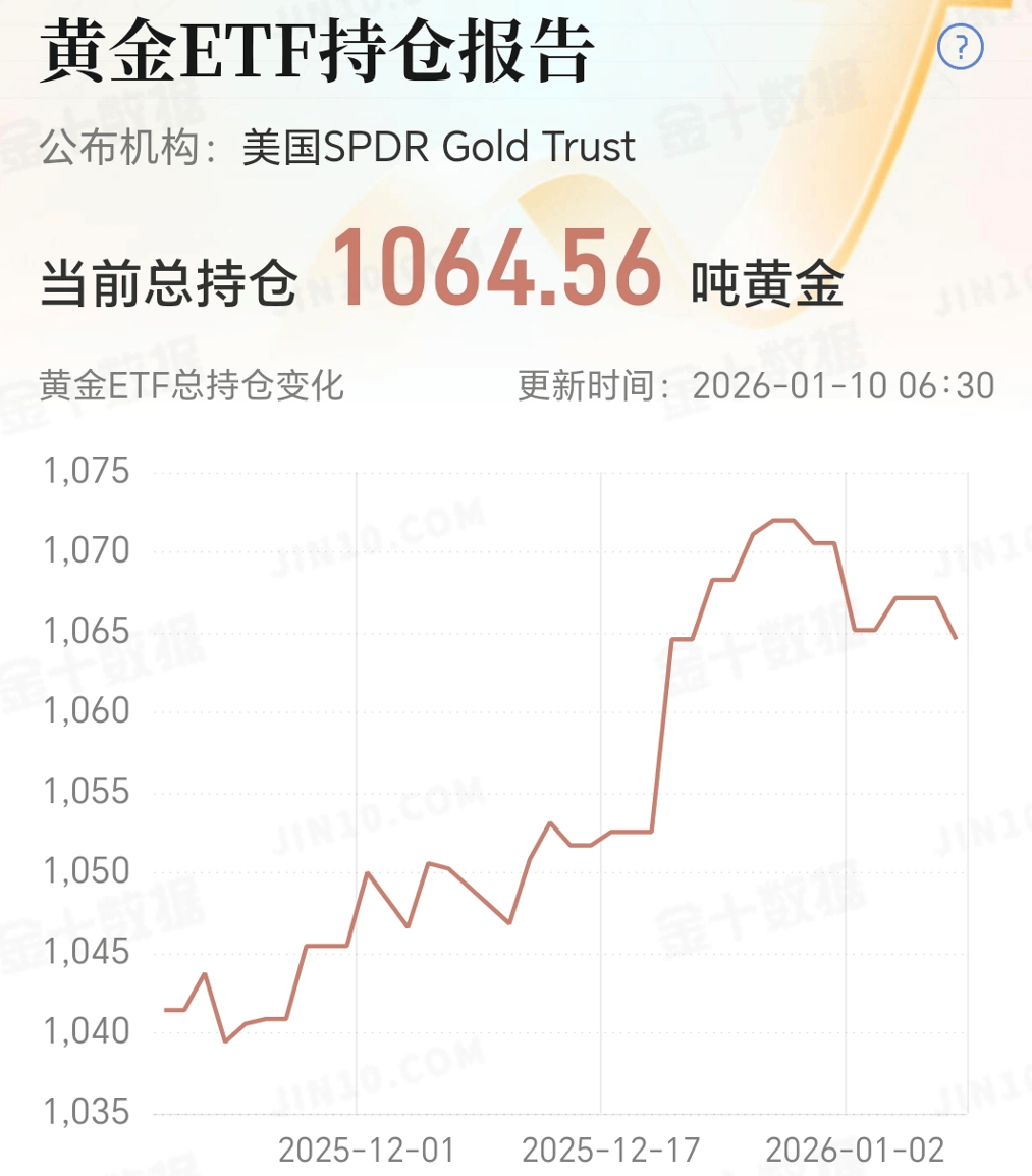 【黄金ETF持仓】截止到1月10日持仓,当前持仓为1064.56吨。