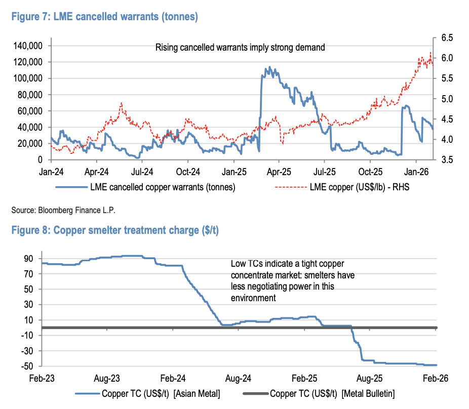 另一方面,伦敦金属交易所(LME)的净投机头寸开始下降,取消仓单数量也在减少。这些信号显示投资者情绪趋于谨慎,市场对短期价格走势的信心有所动摇。截至2026年2月初,铜价维持在每磅约5.30美元的水平,但技术面和情绪面均显示短期承压。
