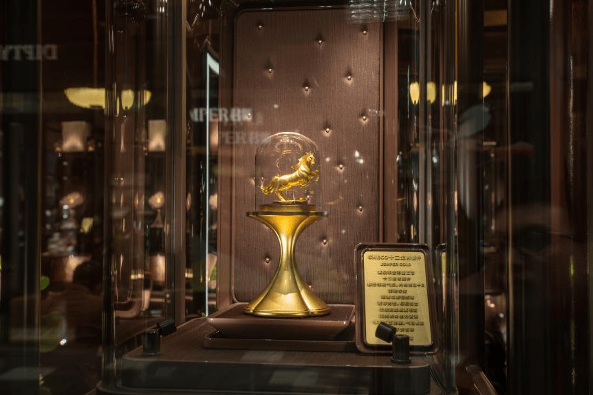 具体而言,君佩黄金作品中精湛的丝绒刻丝与花丝工艺,呈现出“如金上织锦”“如金上刺绣”的极致细腻。这份细腻,恰似太古里建筑中那些精心保留的传统砖瓦肌理、木质格栅的温暖触感,与通透现代的玻璃幕墙形成的精致对话——传统手工艺的温度与现代工业的精密度和谐共存。而君佩独有的镜砂工艺,诠释出“镜中有砂,触中有油”的皇家金色,质感层次丰富,内敛而华贵。