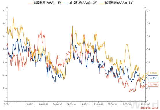 5. 近期城投债(AAA)各期限利差走势及数据