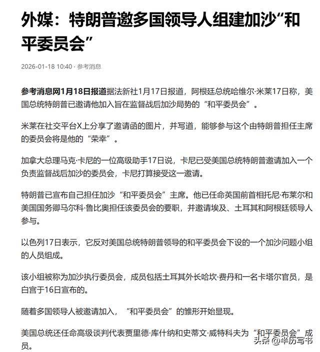 阿根廷总统米莱收到邀请函后,高调晒到网上,配文写的是"倍感荣幸"。加拿大总理卡尼也表示会考虑接受邀请。