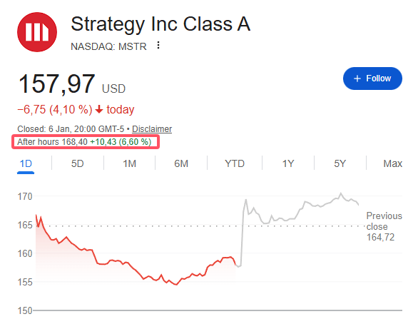 Strategy目前持有超过600亿美元的比特币,约占其企业价值的99%。受此消息提振,Strategy股价在盘后交易中上涨超6%,此前一年该股已累计下跌近60%。