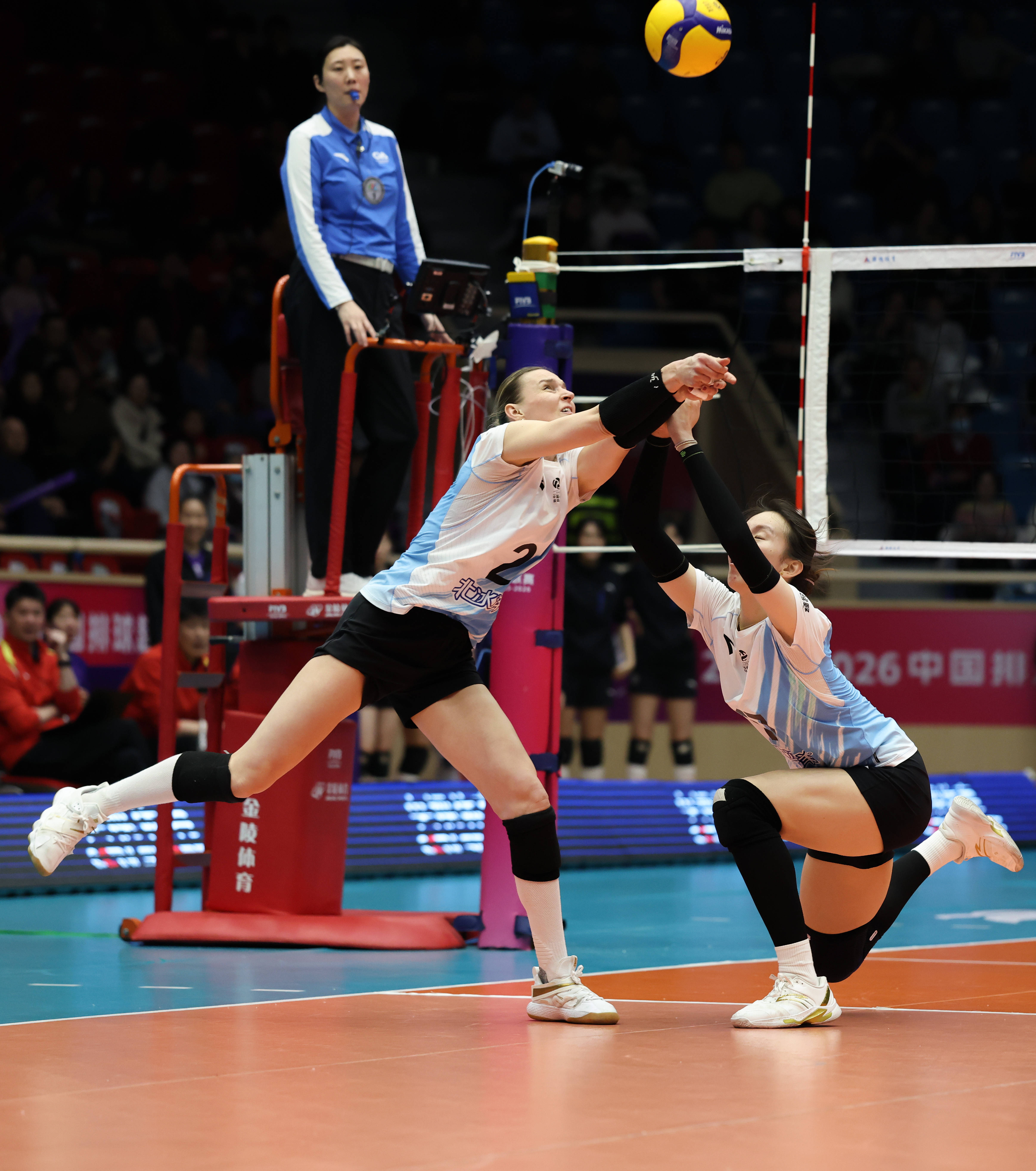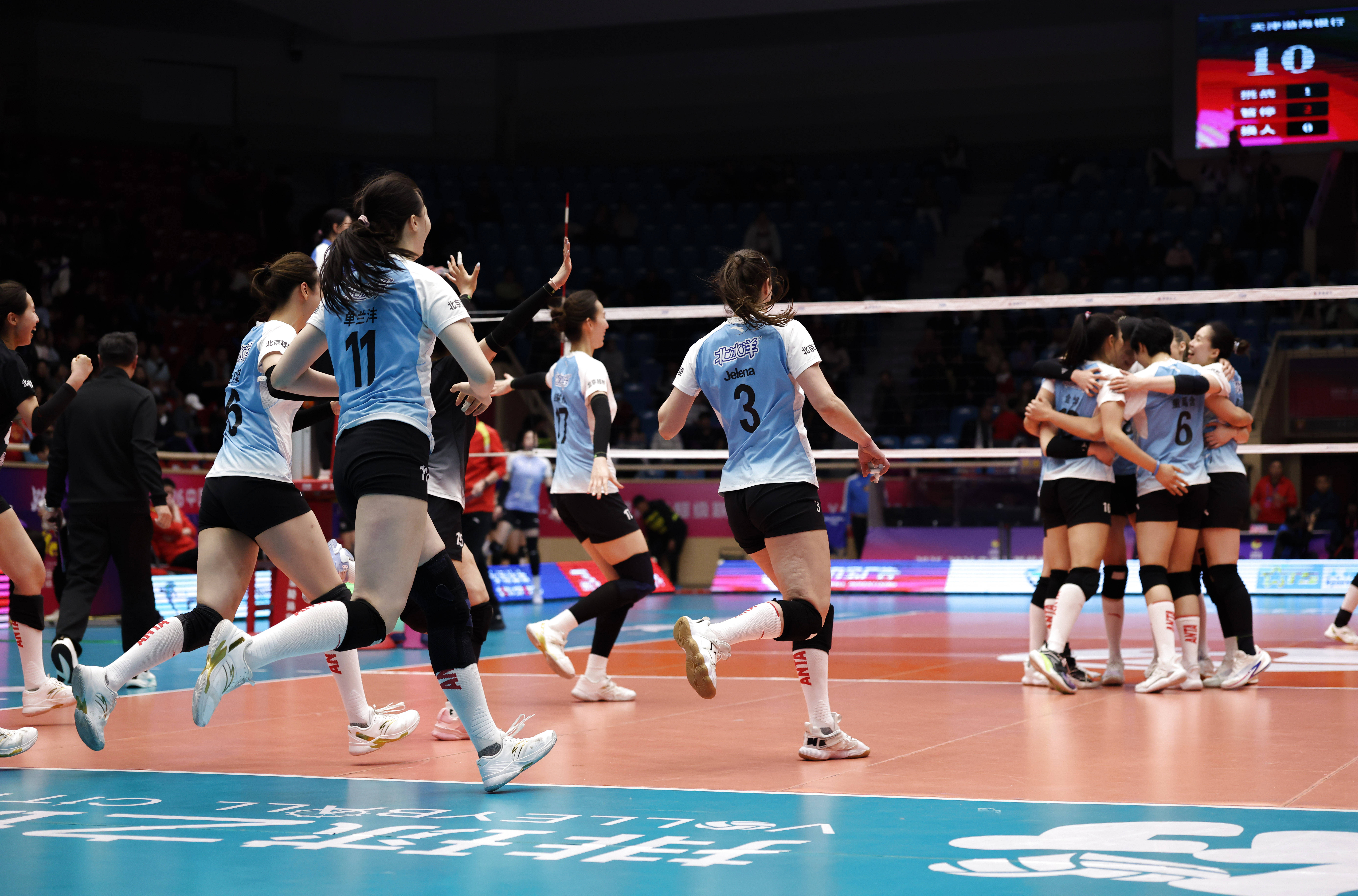 2月25日,在2025-2026赛季中国女子排球超级联赛季后赛C组比赛中,北京北冰洋队客场3比2战胜天津渤海银行队。