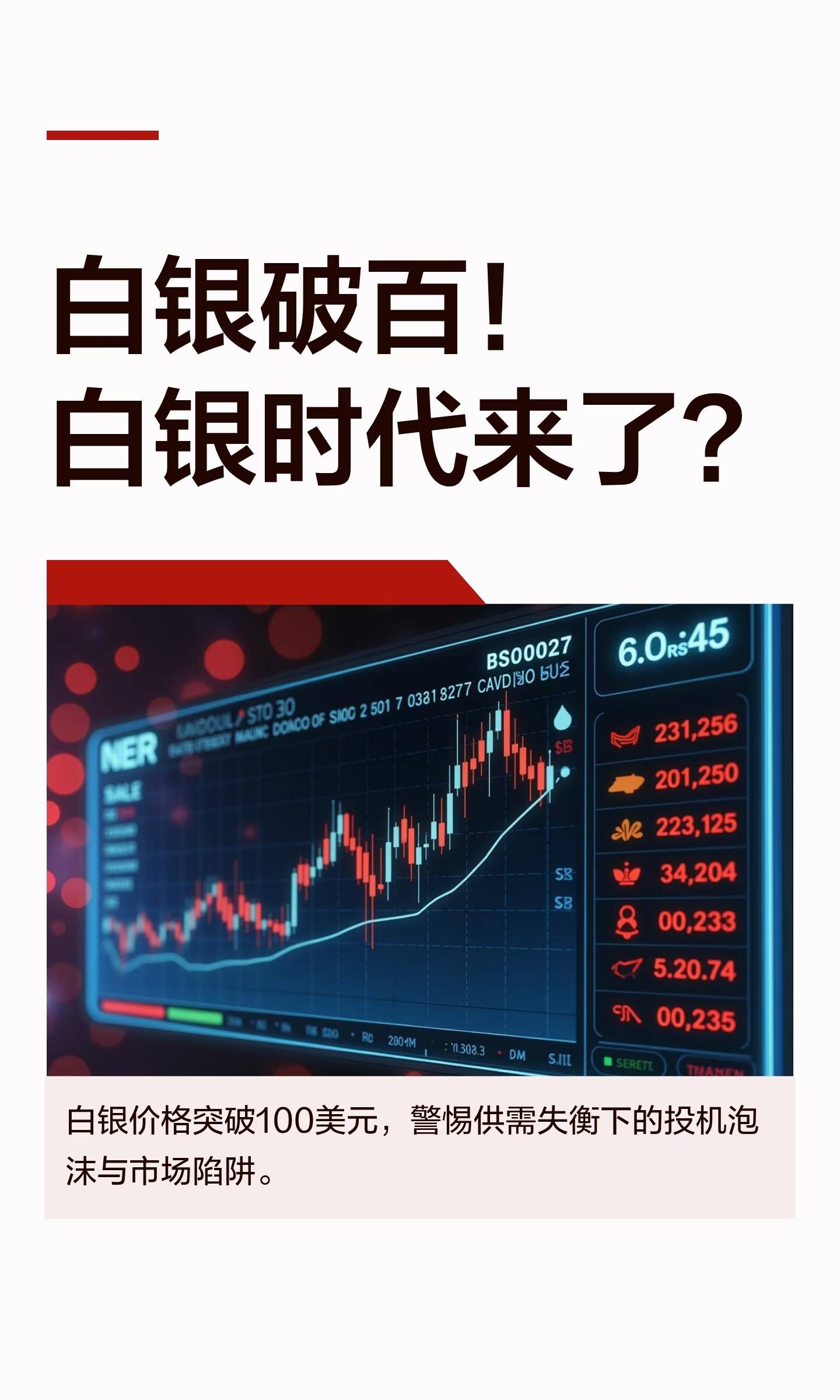 白银破百!白银时代来了?国际白银价格冲破100美元大关!朋友圈里已经开始刷“白银时代来了”“错过比特币不能再错过白银”,空气中弥漫着一夜暴富的焦糊味。但别急,掰扯掰扯这里头的门道。首先,白银破百这事儿,表面看是“供需失衡”的老剧本——光伏产业嗷嗷待哺、工业需求回暖、矿产供应青黄不接。但真相藏在三层滤镜后面:第一层推手:全球央行“放水后遗症”集体发作美联储嘴上说着加息,身体却很诚实地让资产负债表肿成气球。美元信用这艘船漏得比泰坦尼克还艺术,资金像无头苍蝇一样寻找避风港。白银作为千年货币备胎,这时候被拎出来充场面,本质上是一场“没有更好选择”的无奈狂欢。第二层推手:机构玩家的“围猎游戏”华尔街的老狐狸,早就通过期权市场和期货合约布下天罗地网。他们先是用AI算法制造“技术突破”信号,再配合媒体渲染“白银稀缺论”,最后趁散户热血上头时从容派发筹码。这套路和当年原油宝事件用的是同一个剧本,只是换了个道具。第三层推手:人性弱点的集体共振 当你看到同事炒股赚了半年工资、邻居炒币换了宝马,那种“错过恐惧症”(FOMO)就像病毒一样攻陷理智。白银突破30美元时你在观望,突破50美元时你拍大腿,现在突破100美元——再不上车就晚了!殊不知,市场最危险的时候,就是连菜市场大妈都在讨论K线的时候。白银这玩意一边戴着“贵金属避险光环”,一边背着“工业金属打工魂”。经济差时炒它的货币属性,经济好时炒它的工业需求。现在两头故事一起讲,但故事讲得太完美时,往往就要准备谢幕了。美国能源部推动光伏补贴→中国光伏企业扩产→白银导电浆需求暴增→秘鲁矿山罢工火上浇油。这一连串反应像多米诺骨牌,但政策的风吹草动也可能让牌局瞬间重组。比如某天突然冒出个“白银替代材料技术突破”的新闻,现在讲的所有故事都会秒变童话。期货市场里,每1块钱的真实需求背后,可能站着10块钱的投机资金。这些杠杆资金像吸血鬼一样嗜血,涨时助涨跌时助跌。等他们抽身离去时,留下的只有普通投资者的账户残骸。2011年白银从49美元闪崩到26美元的剧本,道具组可从来没换过。风险一:波动率 白银单日波动5%是家常便饭,这意味着如果你满仓杠杆,可能还没等到100美元的第二春,就先在回调30%的寒冬里冻僵了。记住:高收益剧本的下一页,往往是高风险。风险二:“纸白银”和“真白银” 不同ETF、期货合约只是白银的“灵魂写真”,真正决定价格的现货市场水深得很。当流动性收紧时,写真和真人的差距可能大过美颜相机和身份证照片。风险三:A股白银股可能只是蹭热点气氛组很多公司白银业务占比不到10%,股价却涨得比主业还凶。这就像包子铺因为卖咸菜涨价,本质上还是卖包子的。等热潮退去,裸泳的只会是跟风的你。 如果是A股散户,比起直接追高白银,不如关注光伏银浆龙头、白银回收技术企业。淘金热里最赚钱的是卖铁锹的,这个道理放哪都适用。如果你坚信白银长期逻辑,那就每月固定配置一点白银ETF,价格高时少买点,暴跌时多买点。时间会奖励那些有耐心的人,而不是那些试图跑赢时间的赌徒。准备投入白银的钱,先问自己三个问题:这笔钱亏损50%我睡得着吗?我持有的理由市场大部分人都知道了吗?我有没有设置机械化的止损纪律?如果答案有一个是“否”,请放下手机去冲个冷水澡。买入时机藏在两个地方:一是市场出现“多杀多”恐慌踩踏时(关注VIX指数冲高时刻),二是行业出现“错杀”机会时(比如某白银龙头企业因非主业问题暴跌)。其余时间,喝茶看戏比下场搏杀更养生。金融市场最讽刺的规律是:当所有人都看到“历史性机会”时,它往往已经变成了“历史性陷阱”。白银的故事很美,但比故事更美的是你账户里活到下一个牛市的本金。太阳底下无新事,变的只是K线形状,不变的是人性轮回。保持独立思考的能力,比追随任何“股神”都重要。