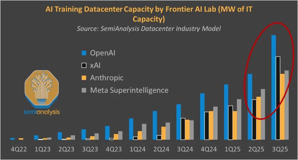 2022年GPT发布以来,OpenAI、xAI、Anthropic、meta Superintelligence等AI训练算力飙升