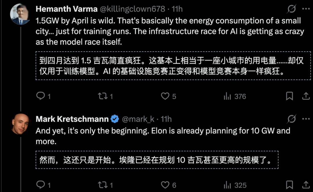 网友直呼,马斯克的算力赌注「太疯狂了。AGI最难的部分已不再是数学,而是字面意义上的能不能找到足够多的电源插座」。