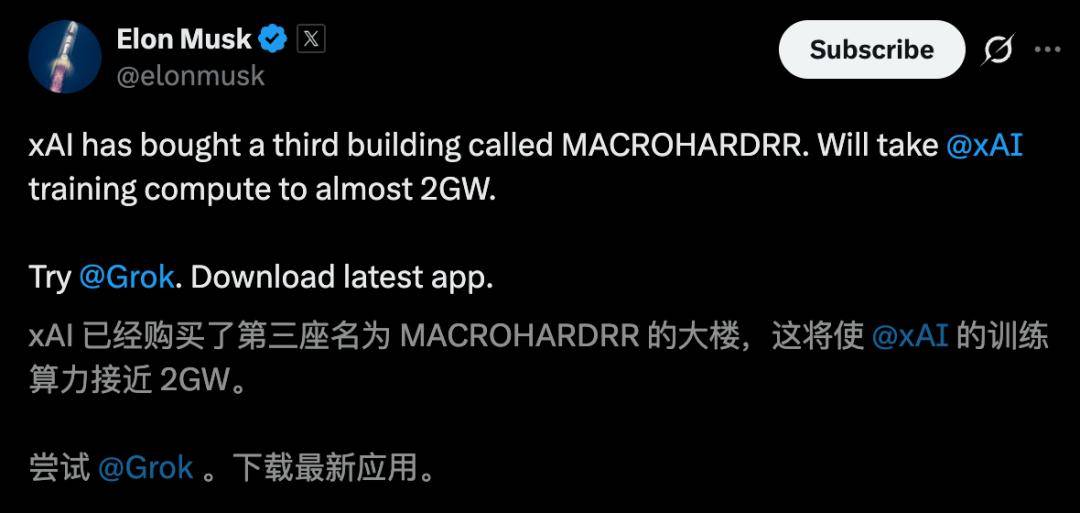 OpenAI、Anthropic在内的很多劲敌还在规划2027年路线图,xAI这边直接把「城市级」算力搞定了。