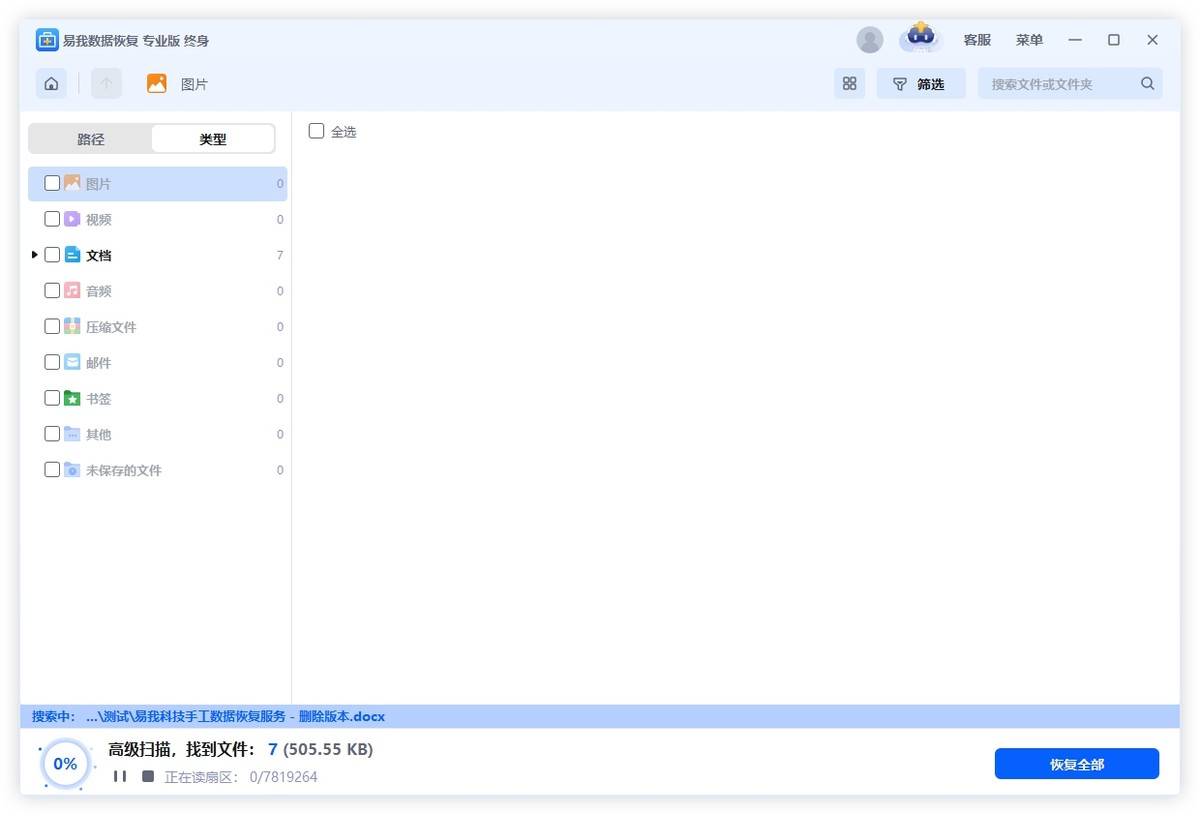 大文件恢复:如果需要恢复高清视频、大型文档等大文件,建议等待扫描结束再恢复,不要中途恢复,并确保保存路径有足够的存储空间。