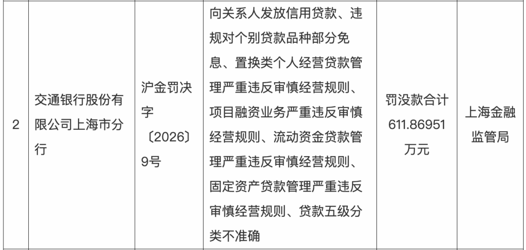1月27日,上海监管局向交通银行上海市分行开出一张百万级罚单,且8名相关人员被罚款、警告。