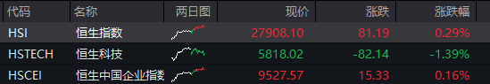 港股:截至发稿,恒指涨0.29%,恒科指跌1.39%。