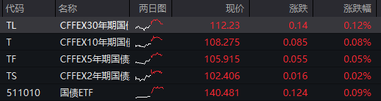 债市:国债期货全线上涨,截至发稿,30年期主力合约涨0.12%,10年期主力合约涨0.08%,5年期主力合约涨0.05%,2年期主力合约涨0.02%。