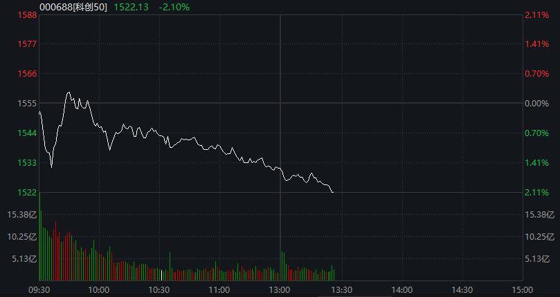 科创50指数跌幅扩大至2%,现报1523.17点。