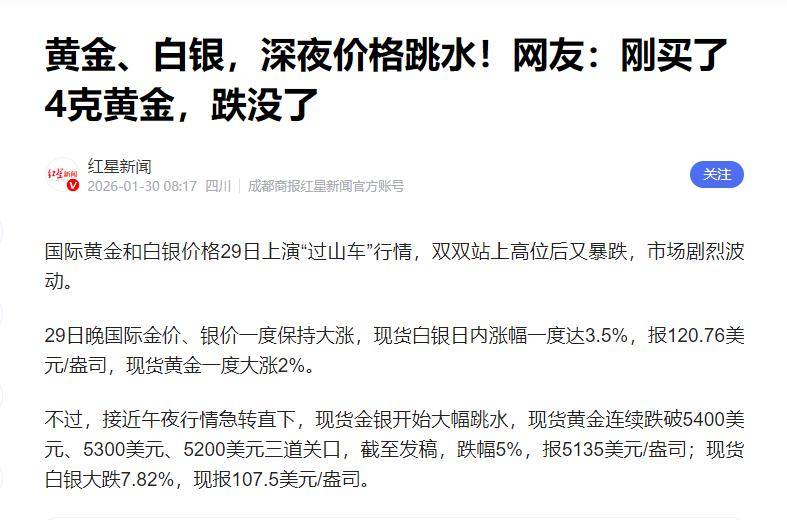这一段时间以来,黄金白银价格持续飞涨,看得不少人都手痒痒,在想到底要不要入手,不过从最新消息来看,黄金白银已经深夜大跳水了,有的人表示自己刚上车没多久,就这么倒霉,可未来的黄金发展方向还不一定,那黄金究竟还能买吗?