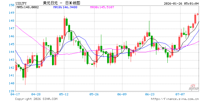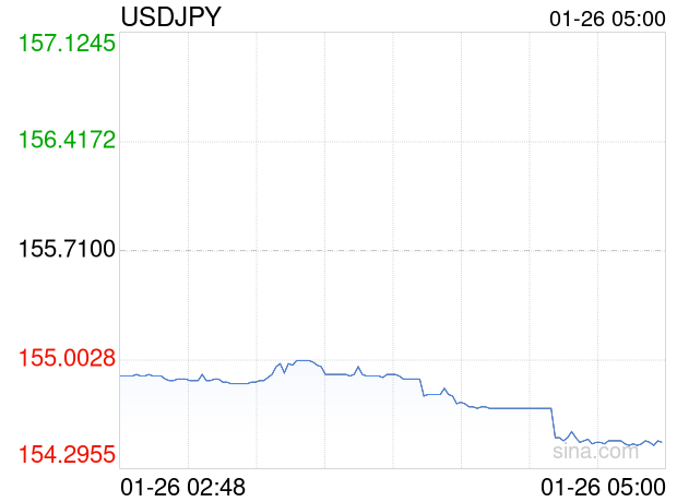 新浪外汇消息2026年01月26日,截至05时00分,外汇市场上美元兑日元汇率跌破1美元兑换154.4700日元。跌幅为-0.7964%