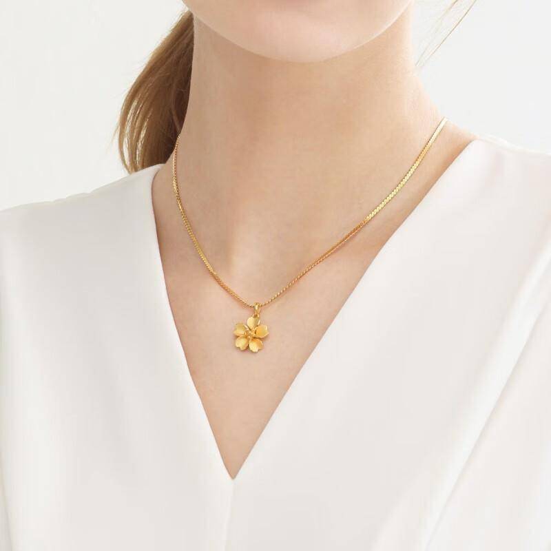 这款吊坠采用足金材质,纯度高达99.9%,每一克都蕴含着匠人的心血。樱花造型的设计灵感来源于东方美学,花瓣的曲线柔美流畅,仿佛能随风轻舞。无论是日常佩戴还是重要场合,都能为佩戴者增添一抹优雅气质。