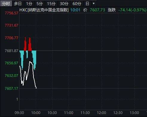 纳斯达克中国金龙指数跌近1%,热门中概股涨跌不一。水滴公司、再鼎医药等涨超4%,世纪互联、禾赛科技等涨近3%。