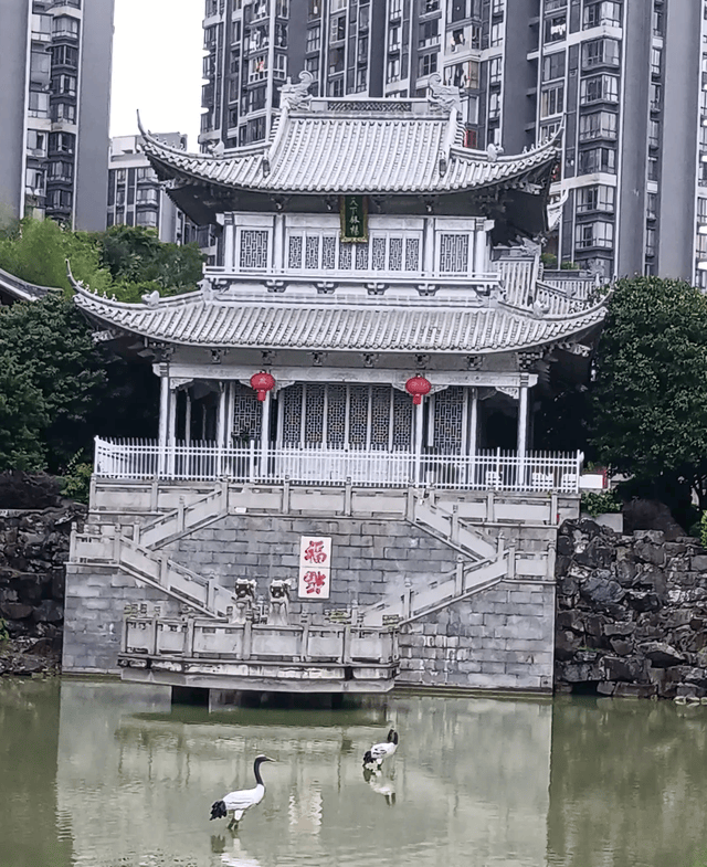 建筑借鉴了日本金阁寺的造型理念,却又融入了鲜明的明清建筑风格。整座楼高约10米,分为2层,从立柱到门窗雕花,几乎全用银片包饰,在日光下流转着静谧的光泽。