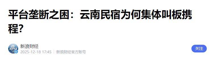 早在2025年12月,云南民宿协会就直接亮剑,说收到一大堆民宿老板的投诉,核心问题就俩:一是“二选一”霸王条款,想在携程上获流量,就不能在其他平台上架。