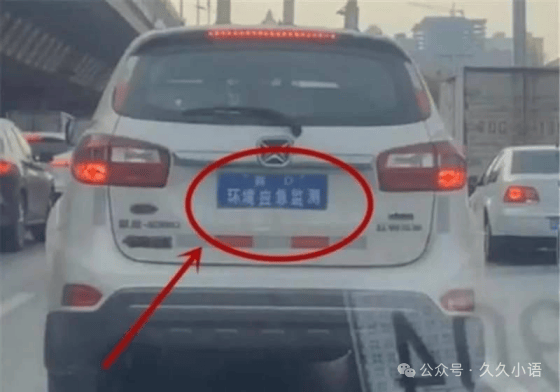 这车牌写的啥玩意儿?"环境应急监测"几个大字直接怼满整个车牌。老大爷当场看傻眼了。
