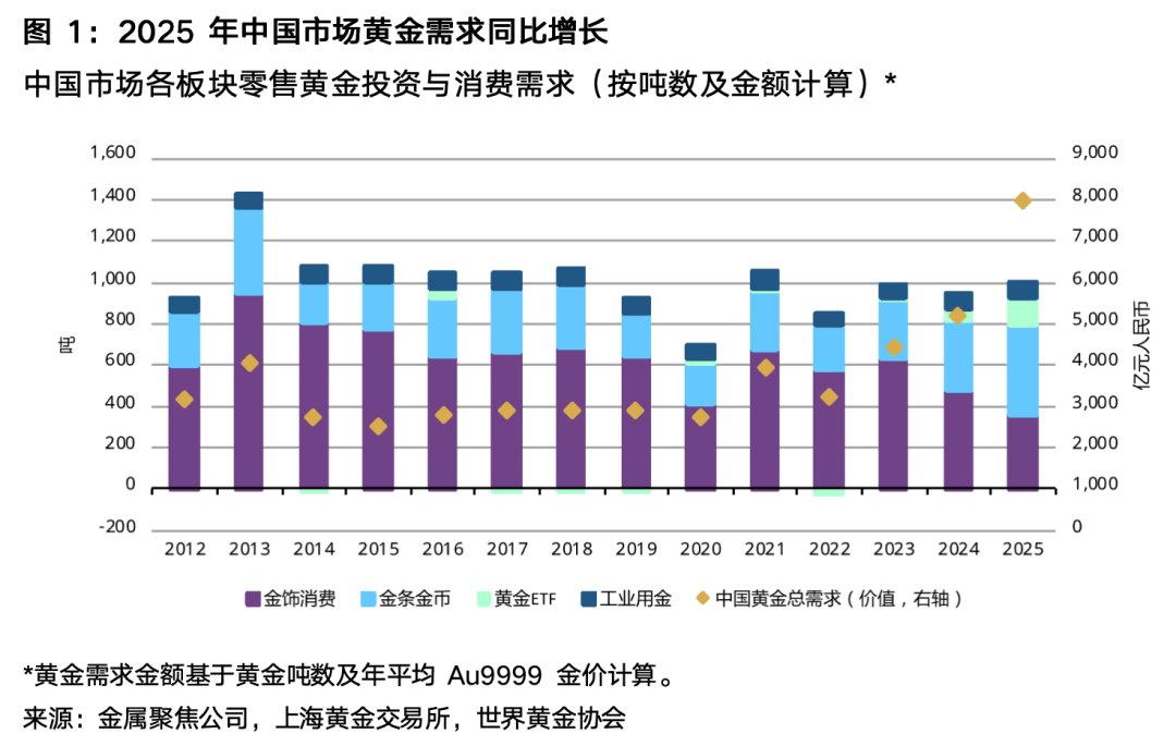 中国的黄金市场在2025年同样呈现强劲势头。
