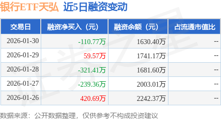 证券之星消息,1月30日,银行ETF天弘(515290)融资买入395.15万元,融资偿还505.92万元,融资净卖出110.77万元,融资余额1630.4万元,近20个交易日中有11个交易日出现融资净买入。