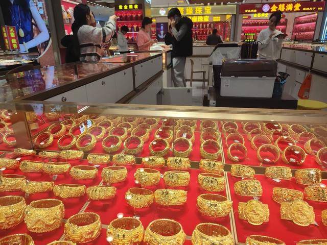 深圳水贝黄金饰品金价涨至1294元/克,白银销售价格涨至31.12元/克。周良成/摄
