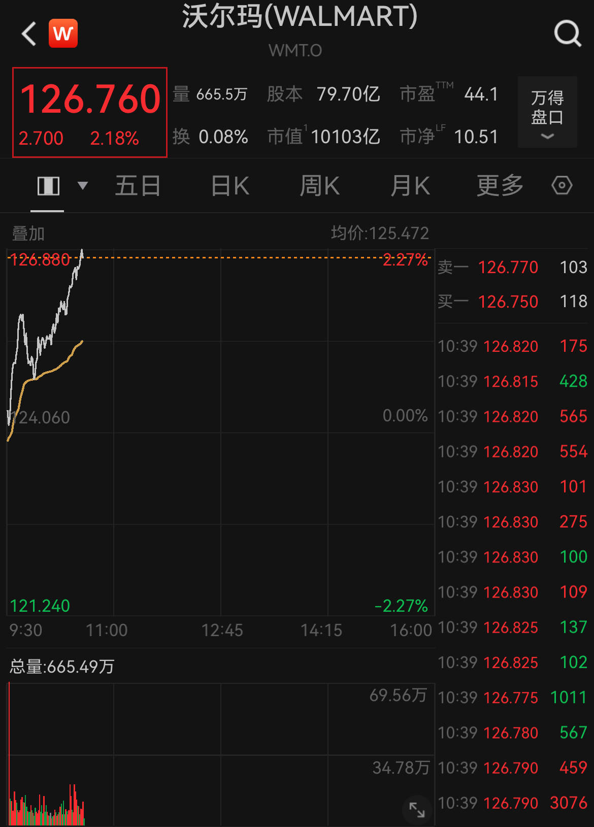 盘中,沃尔玛上涨超2%,股价触及126.83美元高点,创盘中历史新高。沃尔玛今年以来股价累计上涨超13%,而标普500指数同期涨幅仅为2.0%。